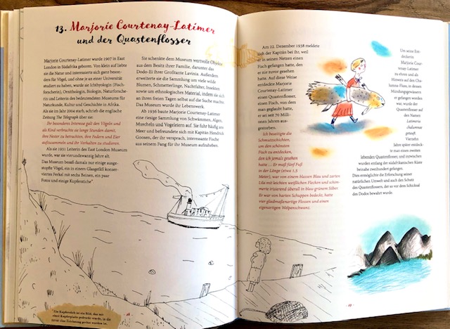 Ich liebe die Illustrationen von Isabel Pin und sie sind hier wundervoll gelungen. Feine Aquarelle mit Zeichenfeder ausgearbeitet, machen das Buch zu einem Hingucker. Inhaltlich kann ich das Buch schwer einordnen. Es geht um den Dodo und Mauritius, sehr intensiv, und dann werden eine Menge Menschen und Berufe vorgestellt, Berufe, die etwas mit Natur und dem Entdecken zu tun haben. Dann geht es wieder hinüber zu den ausgestorbenen und gefährdeten Arten – minimal. Meiner Meinung nach wird hier viel Wert auf Dinge gelegt, die die meisten Kinder – auch in der Textlastigkeit – langweilen. Dafür kommt der interessante Teil viel zu kurz! Genau vier gefährdete Tiere werden auf zwei Seiten vorgestellt! Und letztlich wird nicht ernsthaft darauf eingegangen, was der Hauptgrund des Artensterbens ist und wie wir das vielleicht noch zu Teilen verhindern können. Insofern geht für mich das Buch ein Stück am Thema vorbei. Thema sollte doch eigentlich sein: Vom Aussterben und Überleben der Arten. Frauen aus diversen Jahrhunderten werden vorgestellt, die als Abenteurerin und Forscherinnen unterwegs waren; interessant, aber was hat das mit dem Thema zu tun? Der Karl Rauch Verlag schlägt ein Lesealter von 8 - 10 Jahren vor. Die Fülle in Information – die eben auch nicht sehr spannend ist – die Textlastigkeit, Satzlänge und Ausdruck setzt ein höheres Leseniveau für mich voraus. Ich empfehle das Kindersachbuch frühestens ab 10 Jahren für Kinder, die ein ausgesprochenes Interesse am Thema haben. Ich bin leider enttäuscht von diesem Buch.