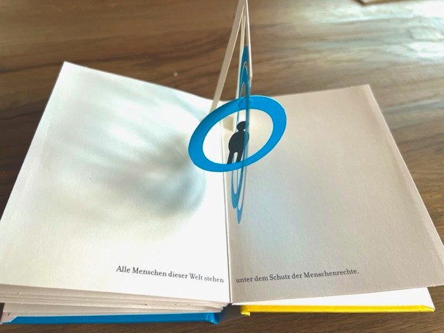 «Wir sind frei und gleich geboren.» Sind wir das? «Wir haben das Recht auf ein Leben in Freiheit und Sicherheit.» Hat das jeder Mensch? «Wir dürfen unseren Aufenthaltsort frei wählen.» Darf das jeder Mensch? Die Menschenrechte sind hier in der Wirform definiert – Wir haben das Recht auf ... Am Ende des Buchs sind alle Artikel im Originaltext aufgeführt (Jeder hat das Recht / Alle Menschen / Niemand darf). Die Umformulierung auf das Wir gibt dem Text etwas Persönliches. Die 3D-Szenen dieses Pop-up Buchs springen beim Aufblättern ins Blickfeld und zeigen auf, wie das Recht verletzt wird: «Wir haben das Recht auf ein Leben in Freiheit und Sicherheit.» - ein Mensch umgeben von Ketten. «Wir dürfen unseren Aufenthaltsort frei wählen.» – ein Mensch, der vor einer Schranke steht, die beim Aufklappen hochspringt. Das künstlerische Format holt die Theorie des Textes auf eine fassbare Ebene – lässt sich gut diskutieren, Beispiele suchen. Solche Texte zu besprechen ist grundsätzlich langweilig - doch gerade die Menschenrechte bieten sich an, praktisch dieses Feld anzugehen. Der Sauerländer Verlag gibt eine Altersempfehlung ab 6 Jahren. Das halte ich für gewagt, insbesondere, wenn man sich die grazilen, interpretationsträchtigen 3D-Szenen anschaut. Meine Empfehlung: ab frühestens 8 Jahren, eher ab 10 Jahren – Allage. Das Kinderbuch eignet sich insofern für alle Altersstufen als Unterrichtsmaterial. Empfehlung.